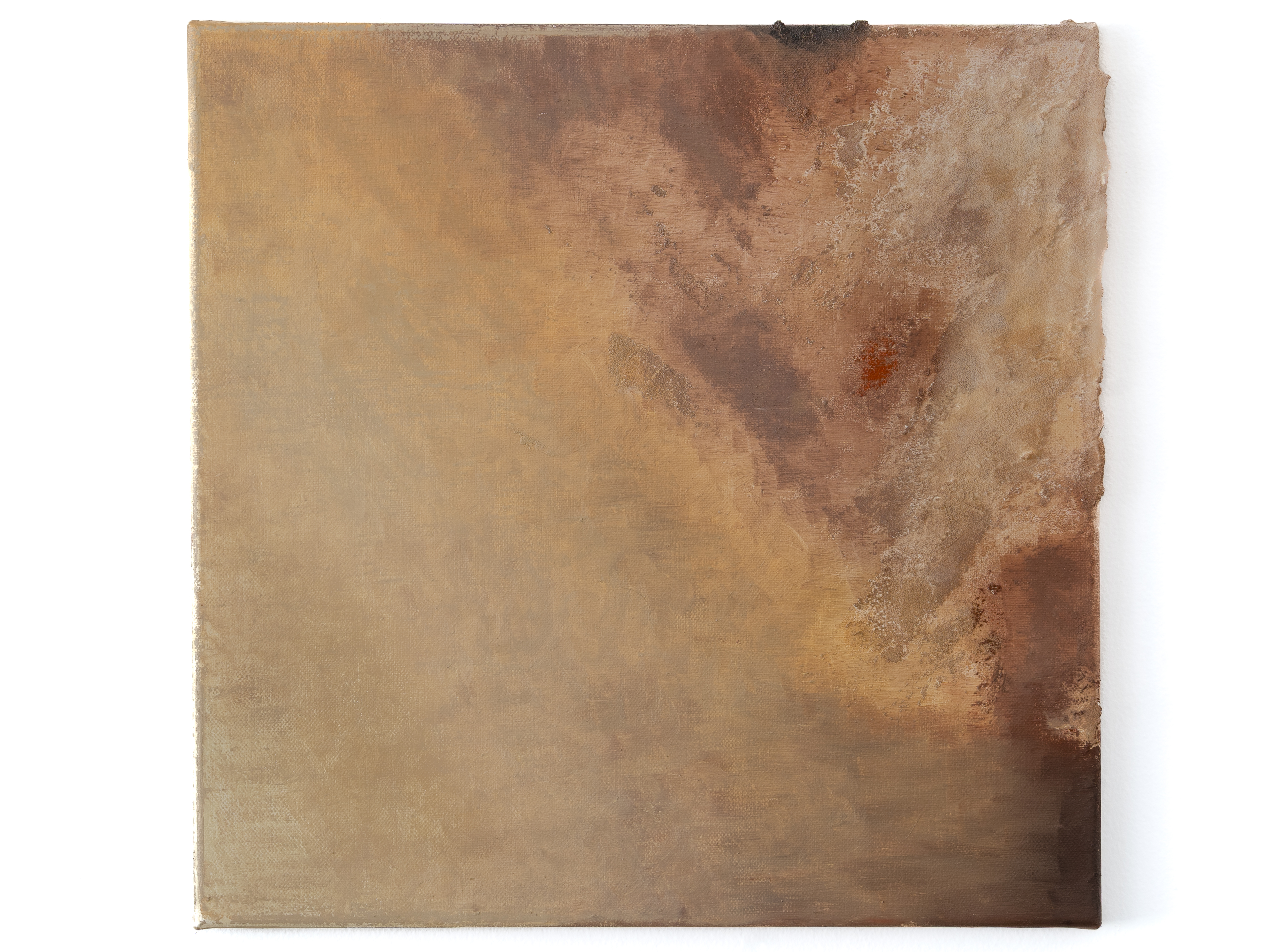 The painting exists in time. Perception shifts with light, with movement, with the hour. Metallic pigments catch and release. What you see at morning is not what you see at dusk. No image can hold this.